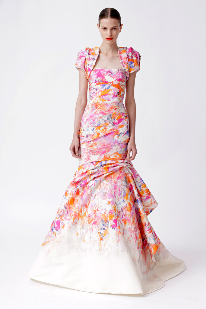Lhuillier described the collection as bold and dramatic, and although the featured gowns were designed for the red carpet, we can envision the looks for the bold bride, too.