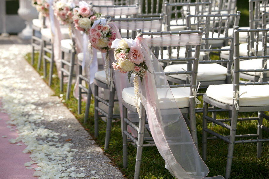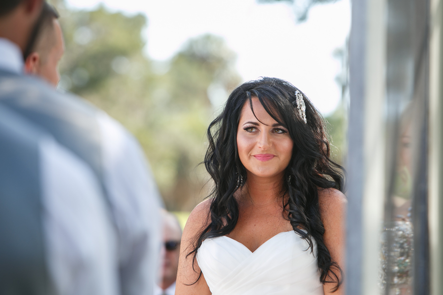 Marine biologists Jess and Nick’s love for water, the environment and Hawaii created the perfect wedding celebration setting. The self-described science geeks have done several science studies near the Hawaiian coastline, so they envisioned a wedding day that encompassed as much of the island as possible. It certainly shows! From the themed invitations and programs (created by eco designer Bella Figura) to pineapple-accented bouquets and centerpieces to the authentic hula dancers, Jess and Nick’s Florida celebration was so Hawaiian, their guests had no choice but to hang loose. The couple even provided eco-friendly mosquito repellant to keep everyone bite free!