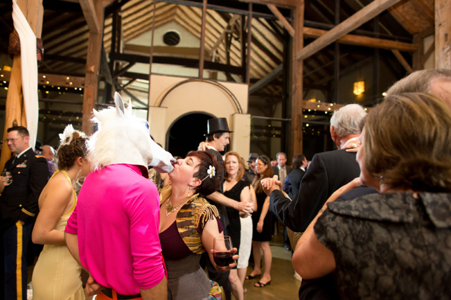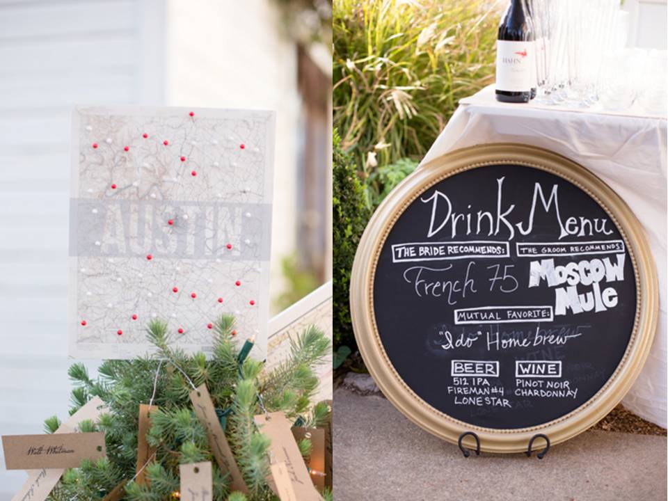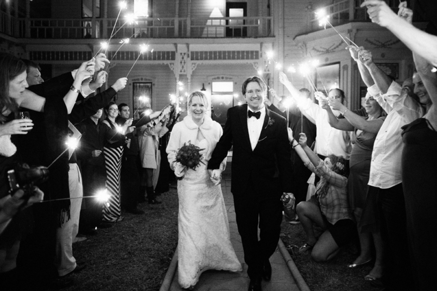 This week’s couple chose the eco-friendly Barr Mansion in Austin, Texas (the nation’s first certified organic special events and wedding venue) for their day last December. With a creative formal dress code in effect, Sarah and Chris delighted their guests with organic food, a tree-inspired escort card display, a little Klezmer music and fire dancers!